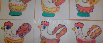 Now let’s get acquainted with Semenov’s nesting dolls. They have bright bouquets on their aprons, the image of which is combined with the shape and size of the toy: the larger the matryoshka, the larger the flowers in its bouquet. The main color of the sundress is red. The black outline marks the edge of the apron and the sleeves of the jacket. On the head is a traditional scarf, decorated along the border. In painting they use the “speckled” technique, which is done with a “poke”.
