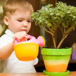 - Полив цветов на участке. Малыши с удовольствием будут заниматься домашним хозяйством. Для этого можно дать им игрушечные лейки, а можно и большие, но только наполнив их на 1/6.